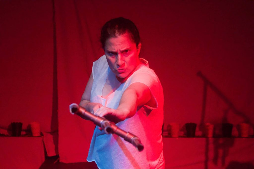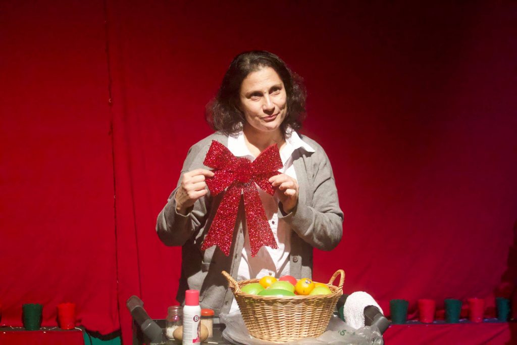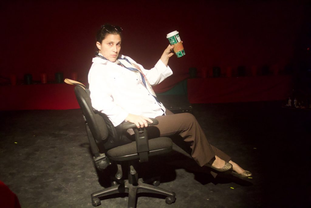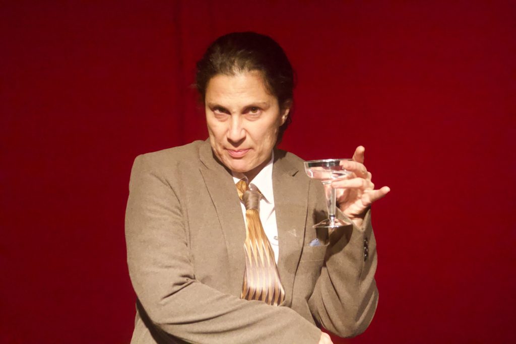“Amy Gorelow does excellent work to bring this particular world to life, peopling it with distinct characters in a fantastic performance and using some simple props, from Tiffany’s wheeled office chair to Warren’s martinis, to enhance the character work. We also feel compelled to note that her trident skills are on point.” -John R. Ziegler and Leah Richards, Thinking Theatre NYC